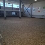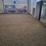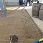 Binnen werden ondertussen de goten vakkundig dichtgemaakt met cement. Dit zorgt voor een strakke afwerking, veiligheid en duurzaamheid van de banen. Terwijl dit werk werd afgerond, stonden buiten de big bags met nieuw grind al klaar om naar binnen gebracht te worden.